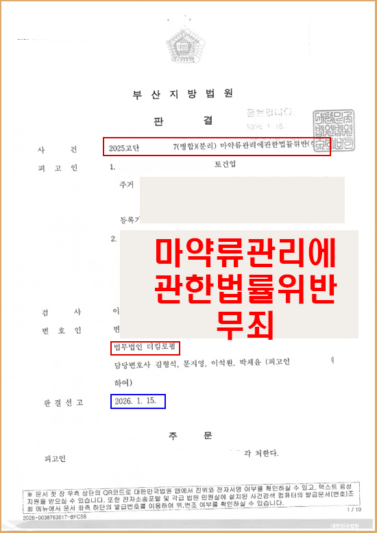 마약류관리에 관한 법률 위반(향정) 일부 무죄판결, 실형 위기 모면!
